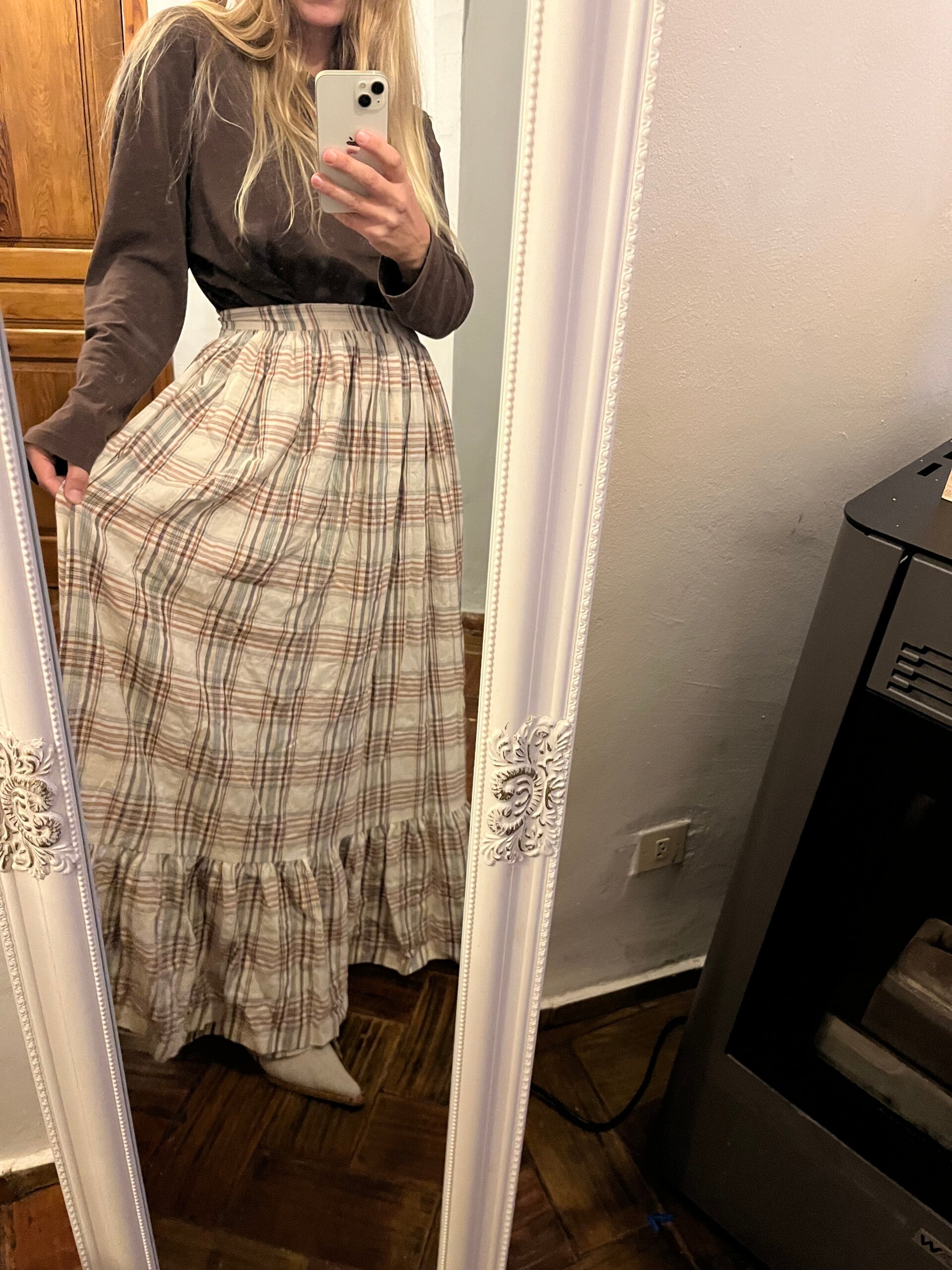 Maxi wrap skirt checked cotton
