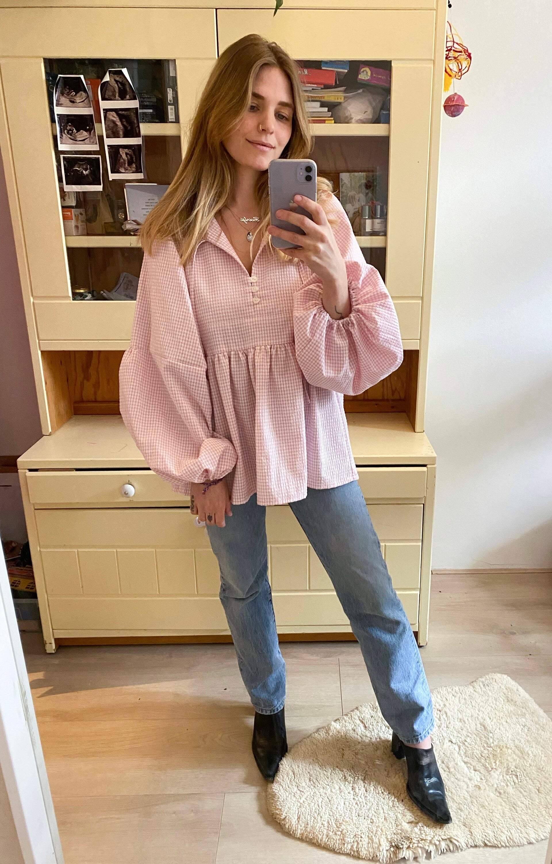 Made of leftover cotton vichy fabric. One of a kind. Size M.